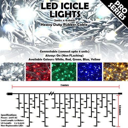 Pro Grade LED Icicle Lights Rubberized 2mtrs x 0.6mtr